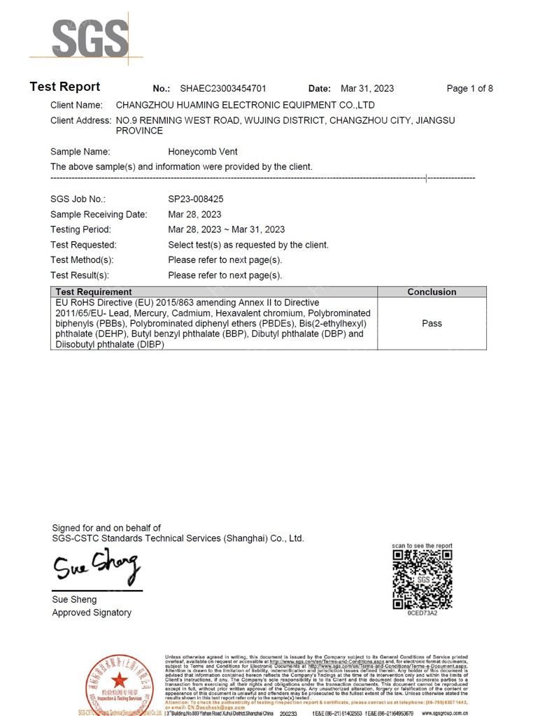 HMEMC波導窗通過SGS RoHS測試