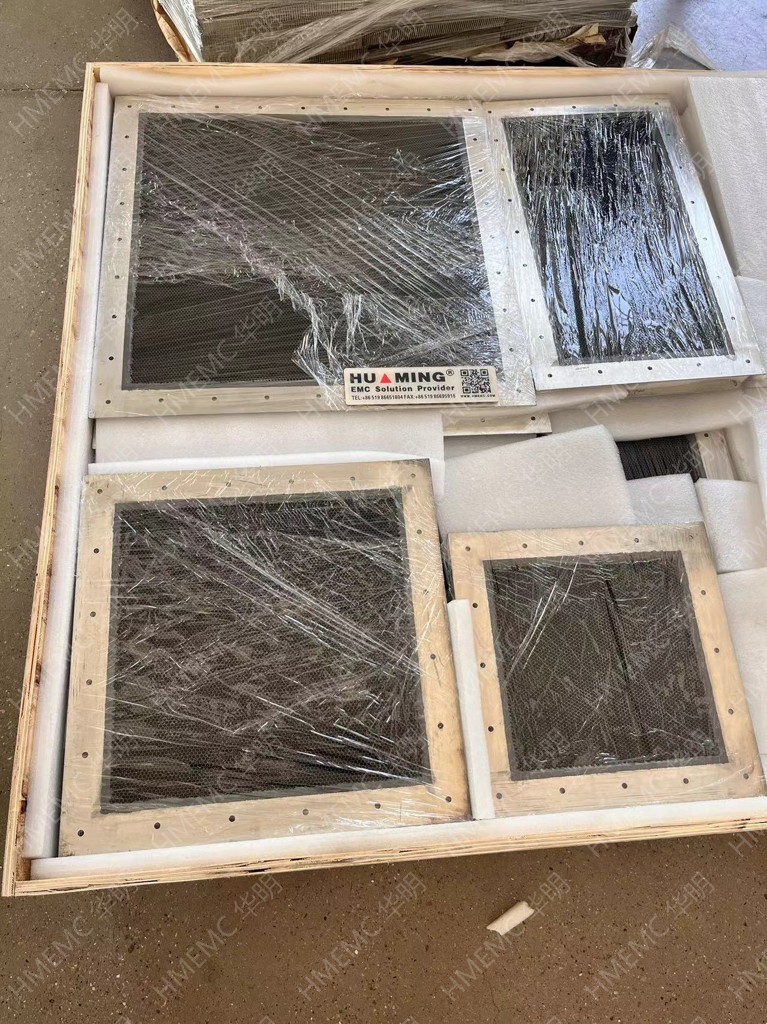 我單位為澳大利亞某政府客戶定制的高性能通風波導窗本周空運交付用戶。該批波導窗設計截止頻率67G,蜂窩孔徑2.4mm,厚度25mm,...